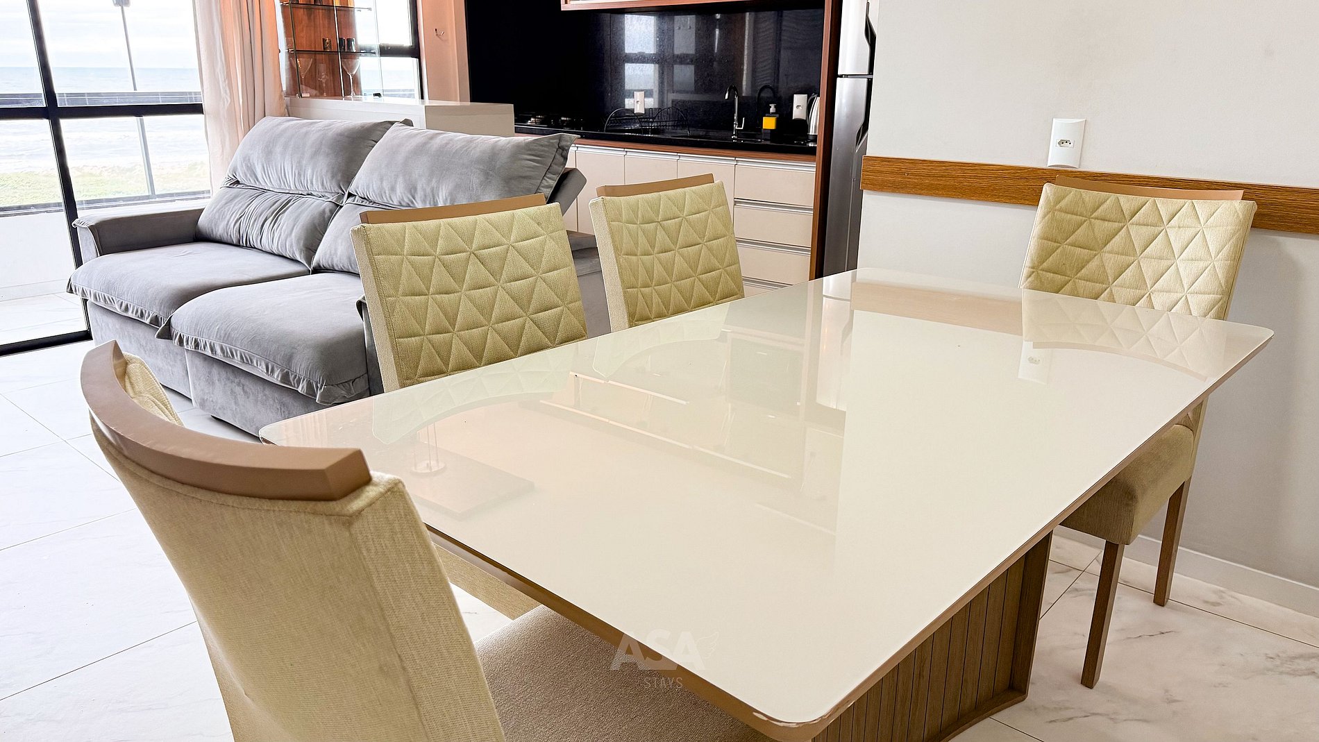 Com 1 suíte e 1 quarto adicional, todos os ambientes climatizados, cozinha completa, lavanderia com máquina de lavar e 1 vaga de garagem, é a escolha ideal para famílias ou grupos que buscam tranquilidade e comodidade em frente ao mar.