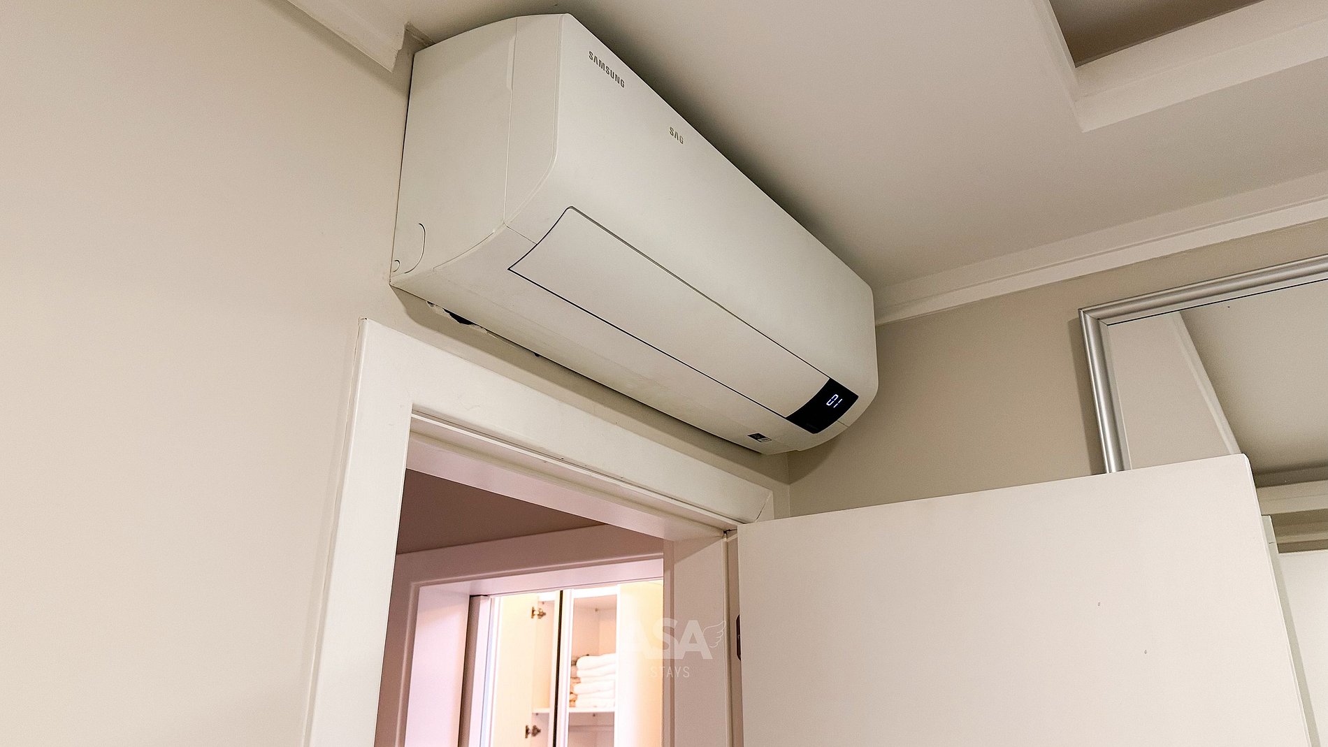 • Suíte 1 – Cama de casal + ar-condicionado + banheiro privativo