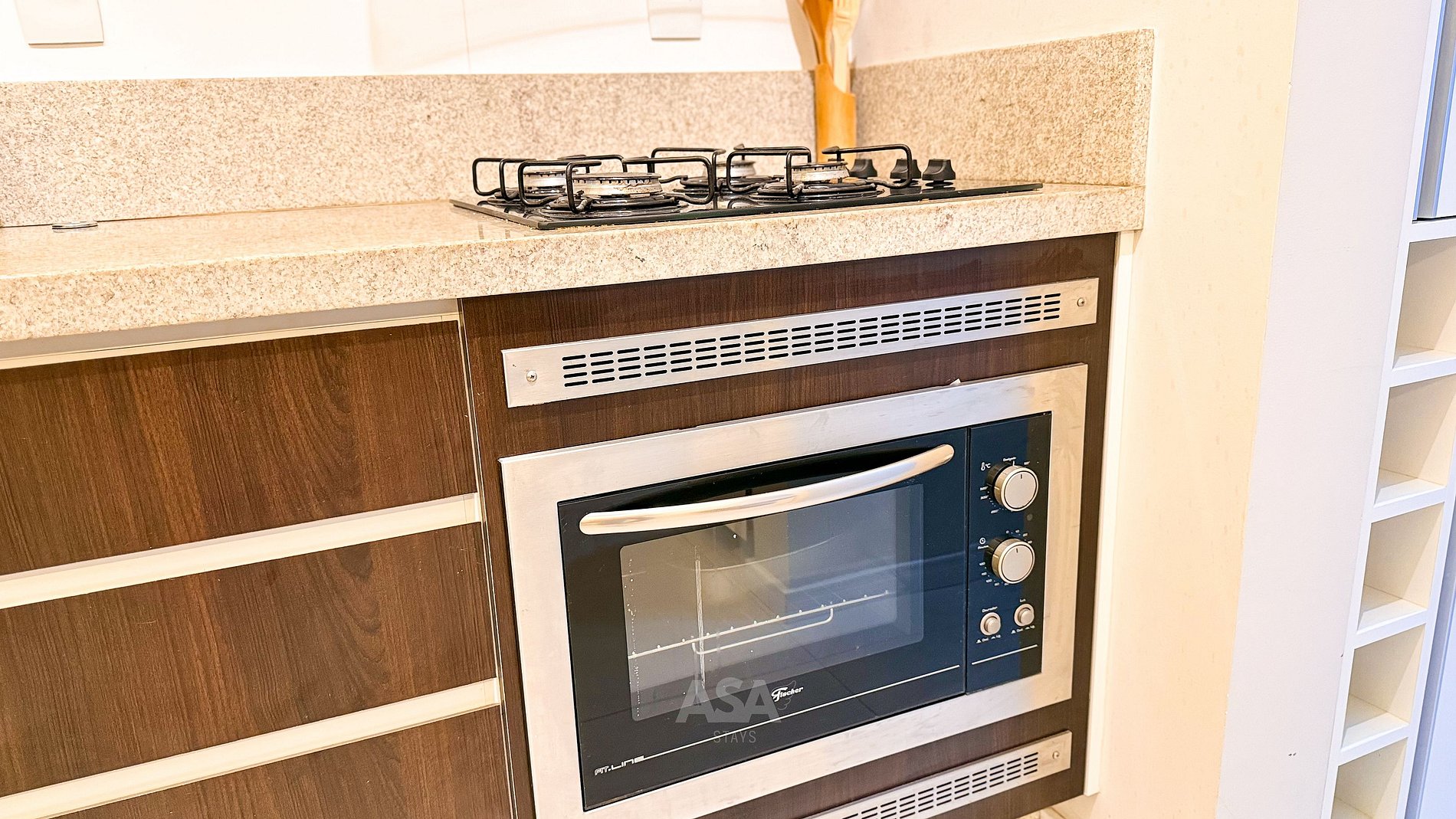 • Cozinha completa com fogão, forno, micro-ondas e utensílios
