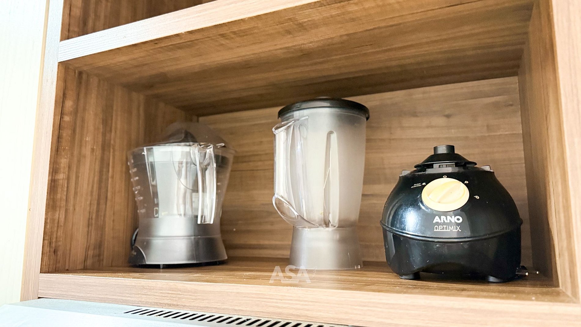 • 4-burner gas stove with oven • Refrigerator • Microwave • Air fryer • Electric kettle • Blender • Coffee maker • Complete set of utensils, dishes, and cutlery