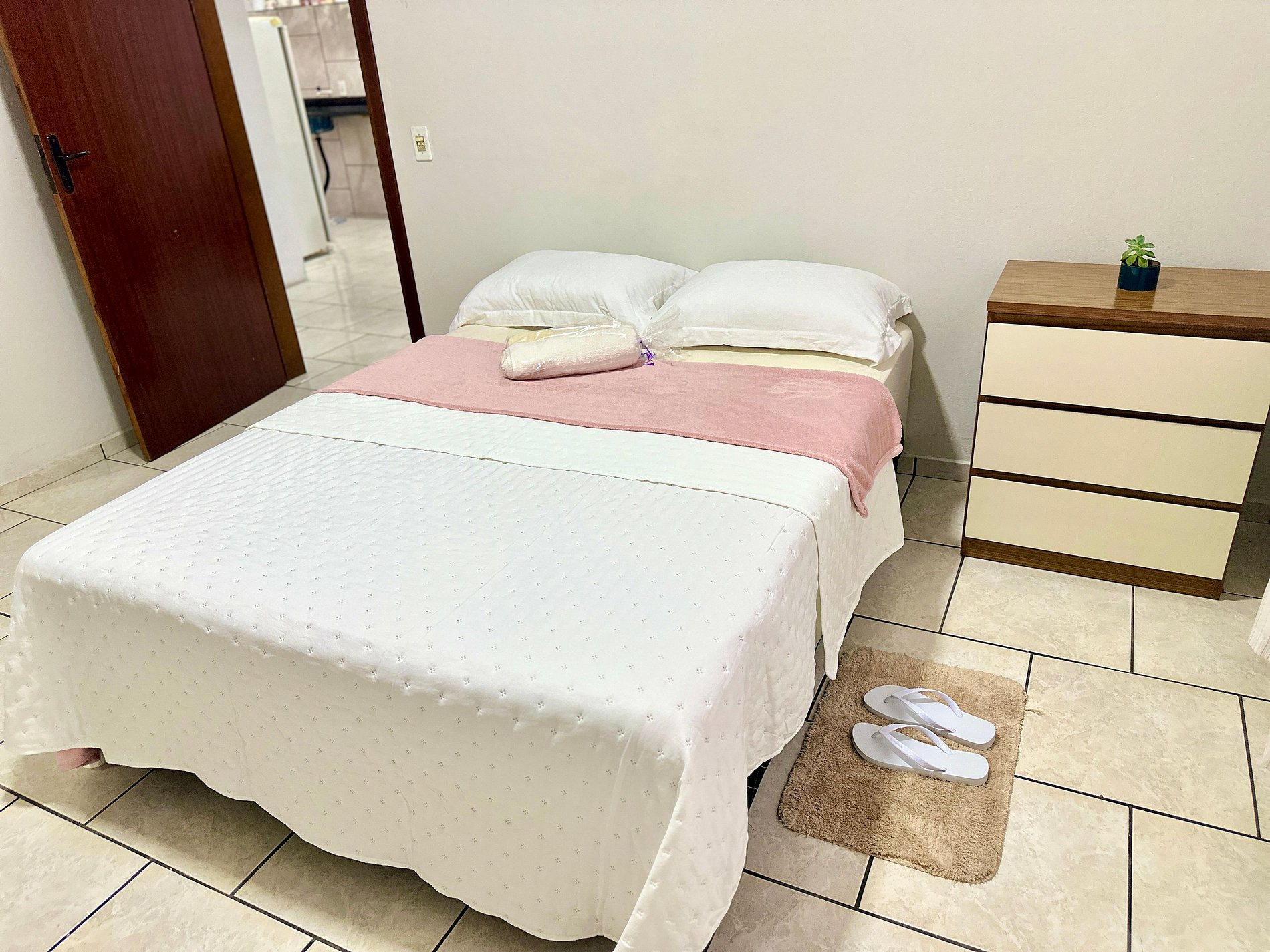 • 2 quartos confortáveis — 1 com ar-condicionado e outro com ventilador • Sala prática com sofá que pode ser usado como cama auxiliar • Cozinha funcional com itens básicos para preparo de refeições, incluindo fogão e geladeira • Conexão Wi-Fi estável via fibra ótica, ideal para lazer ou home office • Espaço para refeições com mesa para quatro pessoas e banquetas extras • Área externa ampla, com quintal privativo e acesso facilitado por ser no térreo • Banheiro com chuveiro elétrico e estrutura simples, porém eficiente • Roupa de cama e banho sempre limpa, com padrão profissional de higienização • Entrada com acesso plano, ideal para quem busca facilidade de mobilidade • Localização residencial com clima tranquilo, perto de mercados e farmácias