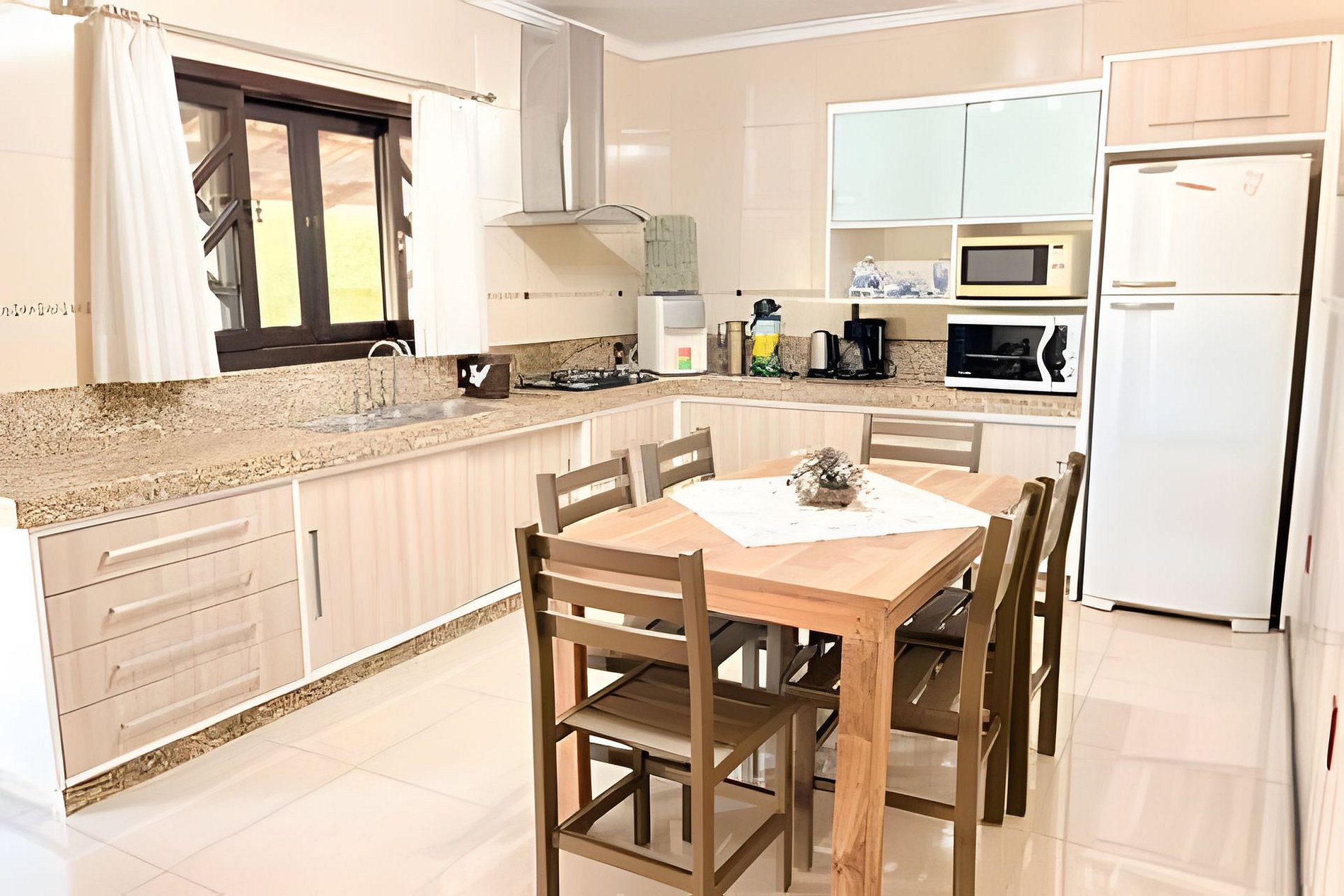 Relaxe em um sítio charmoso cercado pela natureza, perfeito para momentos de lazer e tranquilidade. A casa possui 1 suíte com cama king, 2 quartos com camas de casal e colchão de solteiro extra normal. Conta com piscina, área de festas com churrasqueira parrilha e fogão a lenha. Cozinha equipada e sala com TV. Opcionalmente, é possível agendar serviço de preparo de refeições ou churrasco (taxa extra). Ideal para curtir com conforto e sossego. Dormitórios • 1 suíte com cama king size • 2 quartos com cama de casal • 1 colchão de solteiro extra • Ar-condicionado em todos os quartos • Roupas de cama e toalhas incluídas Banheiros • 3 banheiros no total (incluindo a suíte) Ambientes Internos • Sala aconchegante com TV • Cozinha completa com geladeira, fogão e todos os utensílios • Forno a lenha • Lazer & Conforto • Piscina privativa • Área de festas com churrasqueira parrilla • Mesa e cadeiras para até 25 pessoas • Amplo gramado para descanso ou brincadeiras • Estacionamento no local • Pet friendly • Self check-in disponível Serviços adicionais mediante agendamento • Disponibilizamos equipe para assar carnes ou preparar refeições típicas, mediante taxa extra. Localização • Sítio localizado em Ilhota – SC • Ambiente reservado, ideal para descansar com quem você ama