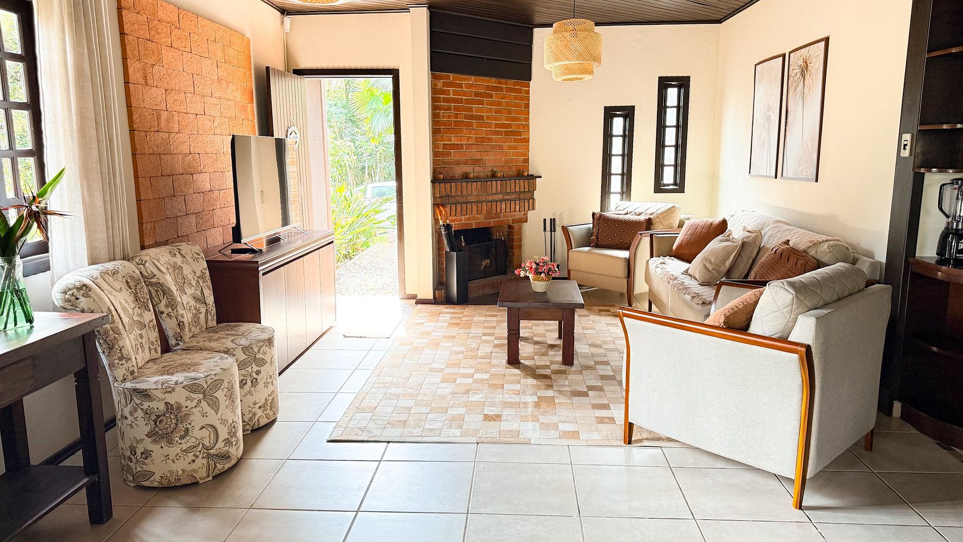 O Encanto do Pinhal é uma charmosa casa à beira da Represa do Pinhal, em Rio dos Cedros – SC. Rodeada por bosques e natureza, a propriedade oferece privacidade, conforto e lazer completo para todas as estações: no inverno, lareira com lenha fornecida; no verão, acesso direto à represa para mergulhos e passeios de barco.