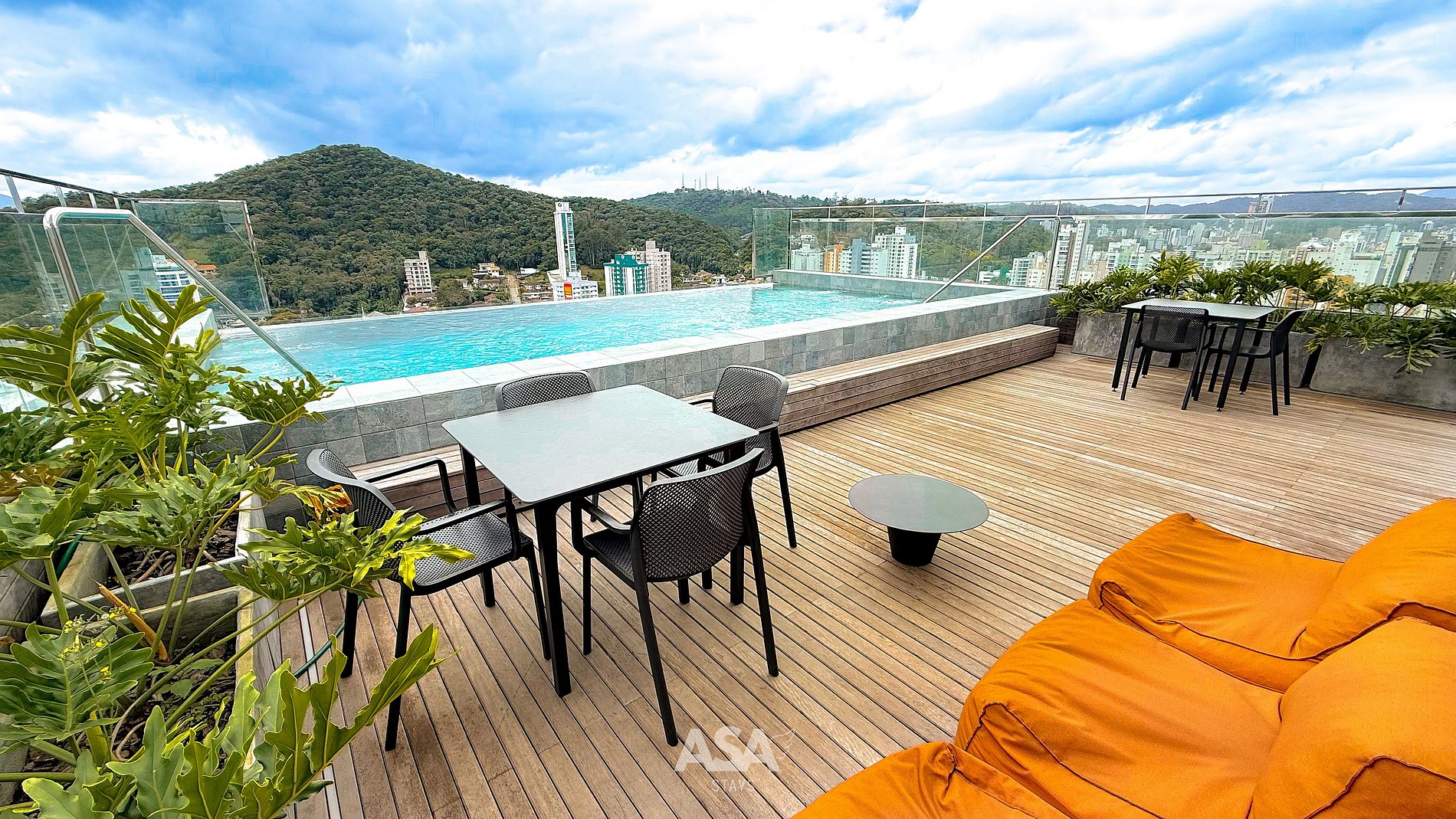 • Piscina no rooftop com vista panorâmica • Academia equipada • Espaço de coworking