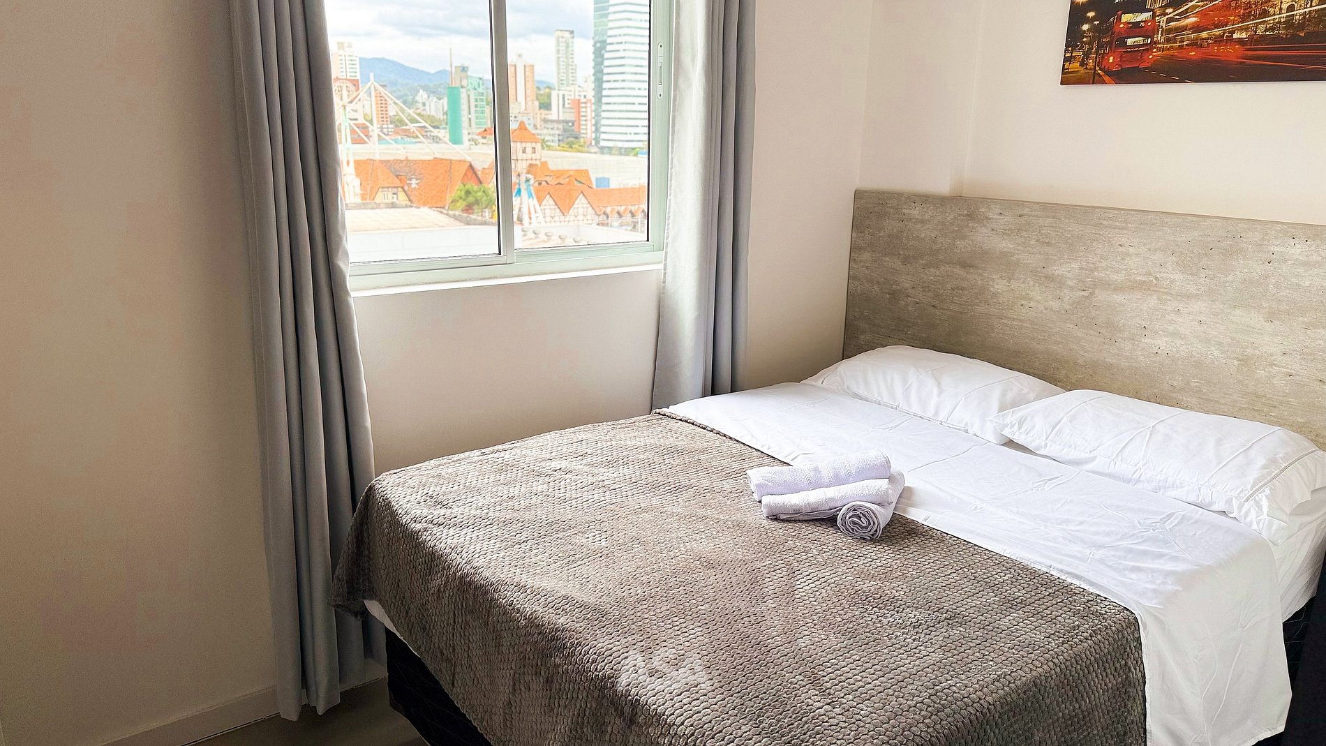 O Loft Oktoberfest une conforto, praticidade e a melhor vista para a Vila Germânica, sendo a escolha ideal para casais ou viajantes que querem viver a Oktoberfest com estilo.
