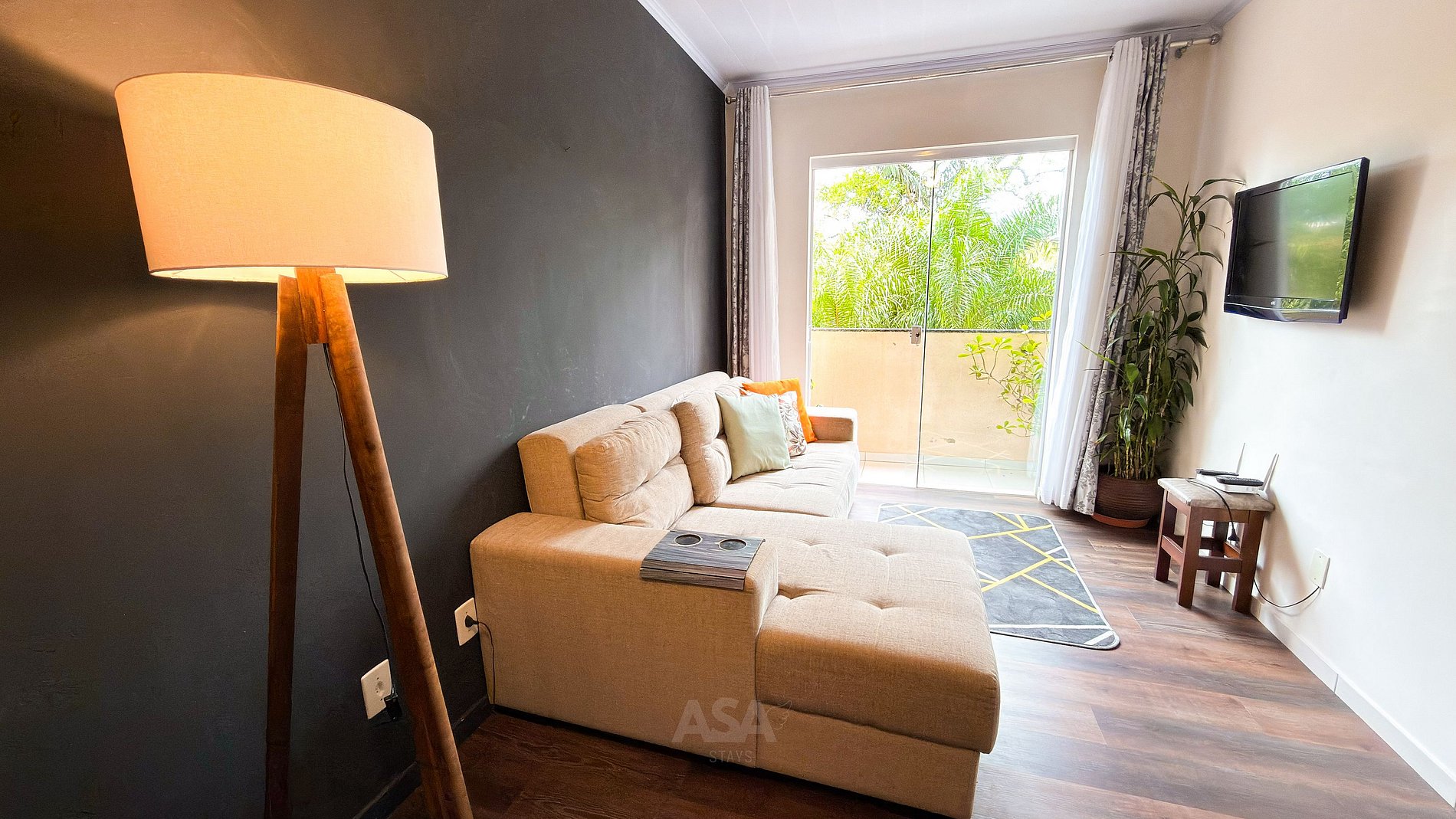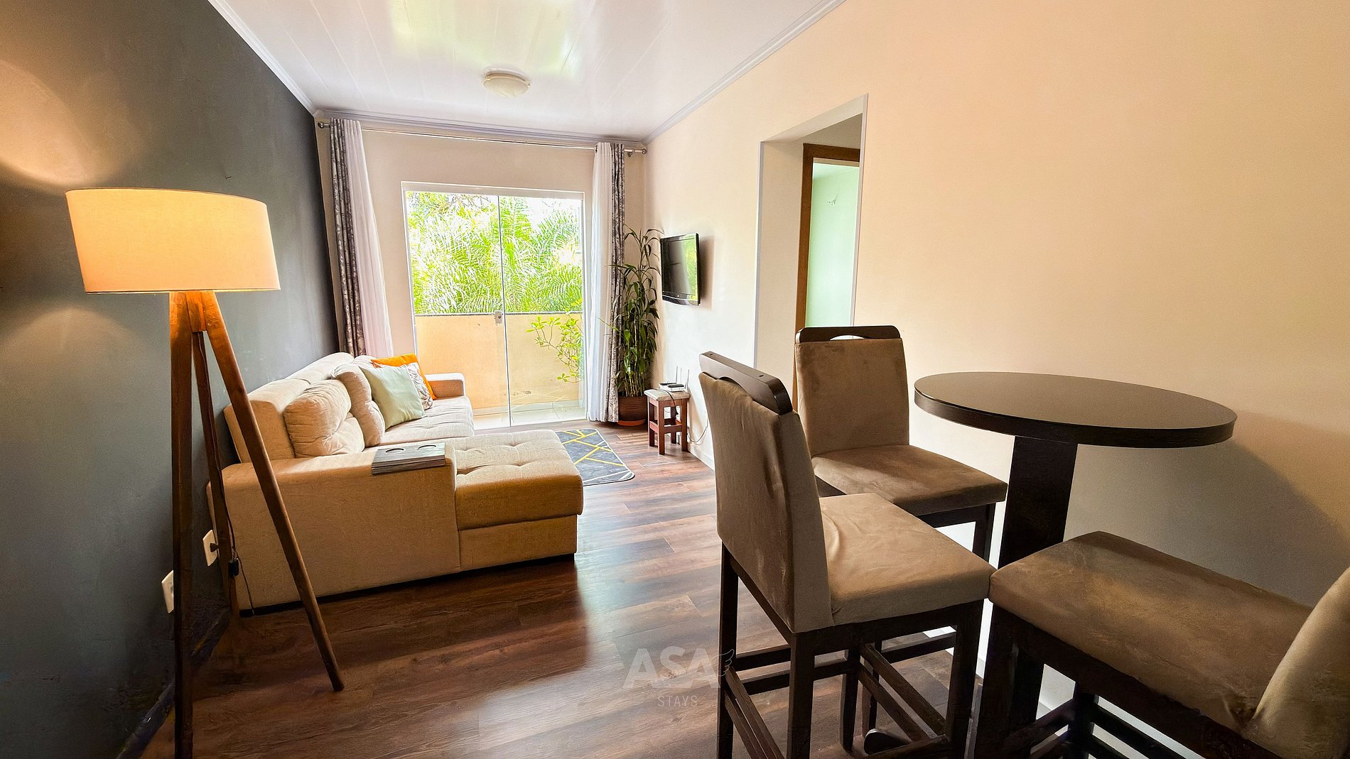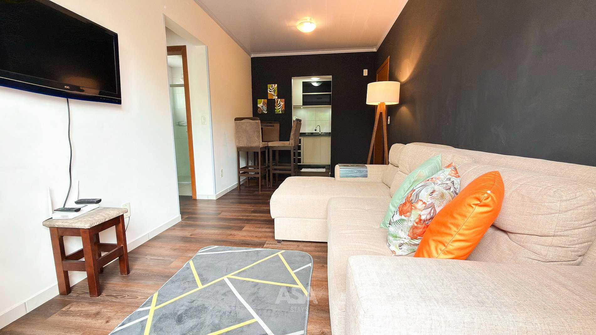 O imóvel dispõe de 2 quartos climatizados, sendo um deles com cama de casal + cama de solteiro, e o outro com cama de casal. A cozinha está totalmente equipada com todos os utensílios necessários, e as roupas de cama e toalhas são fornecidas. Uma vaga de garagem está incluída. Wi-Fi e TV também disponíveis.