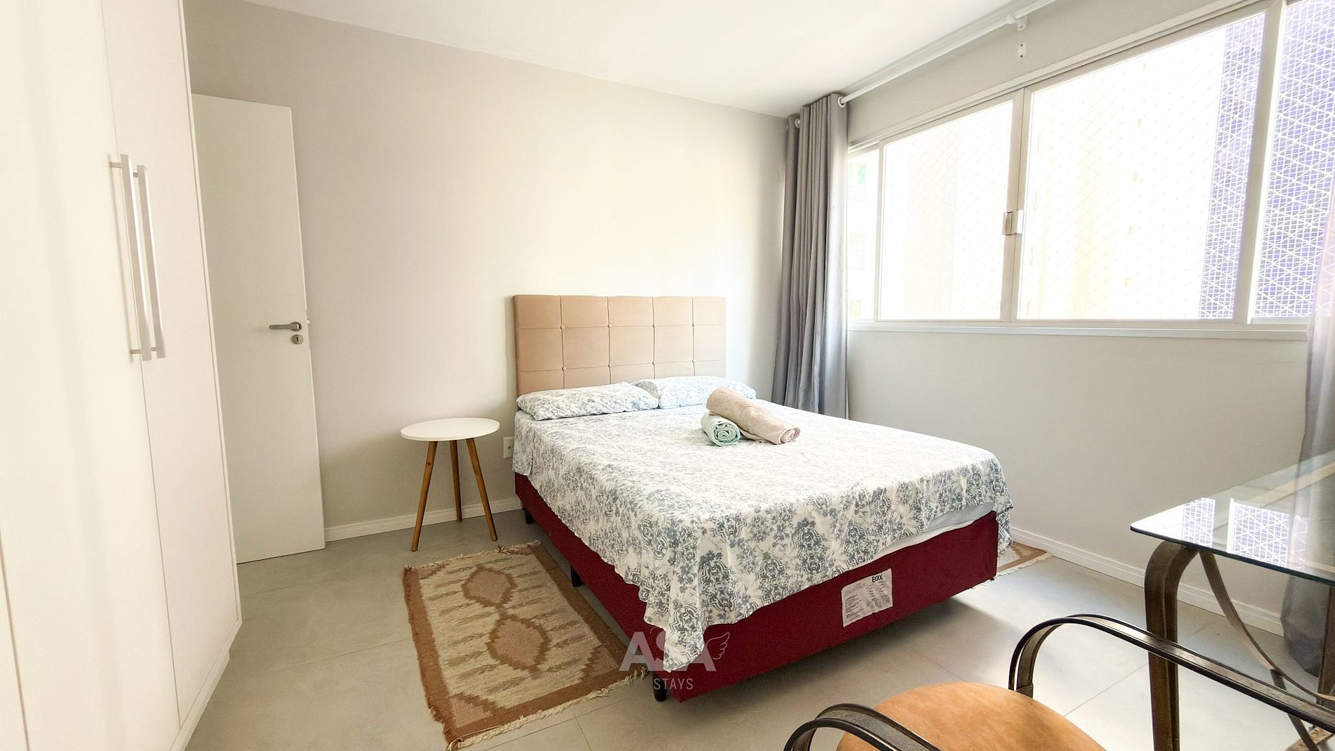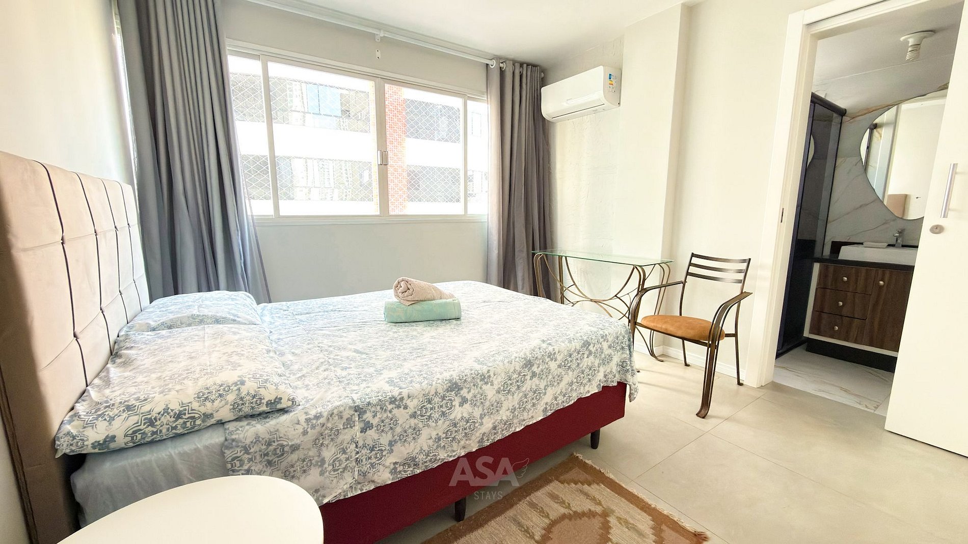 O apartamento é bem distribuído, totalmente climatizado e preparado para receber hóspedes com conforto e funcionalidade.