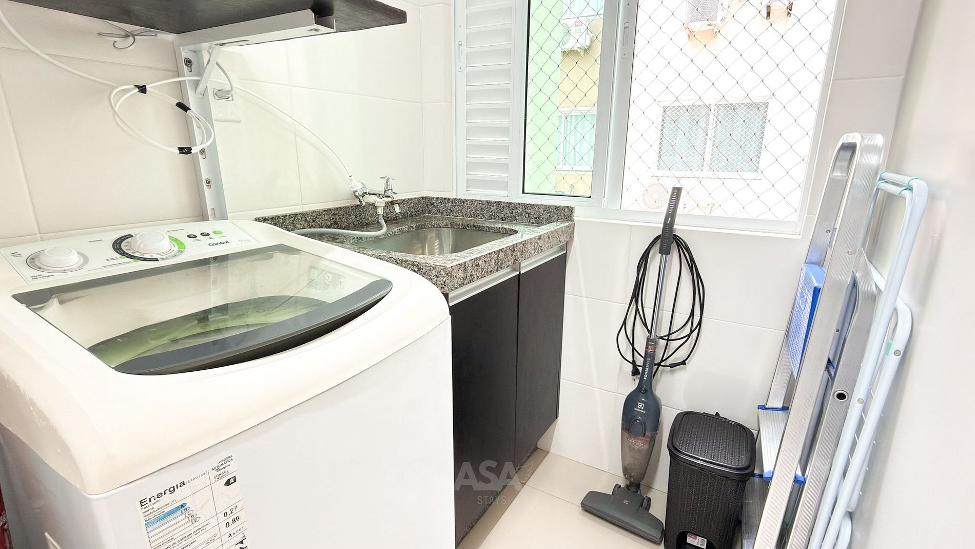 • Lavanderia com máquina de lavar roupas