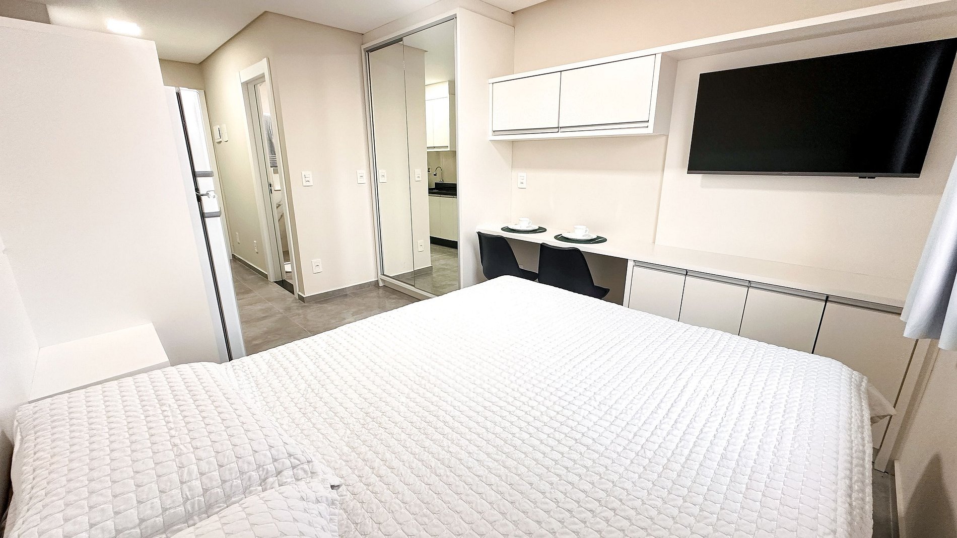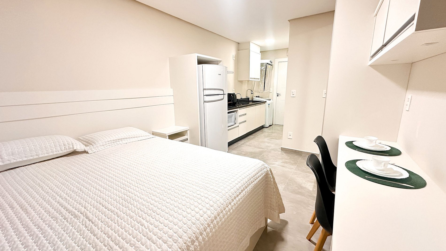Cada unidade é 100% equipada, contando com ar-condicionado, internet Wi-Fi de alta velocidade, roupas de cama novas e cozinha funcional — tudo para proporcionar aos hóspedes o máximo de comodidade e autonomia.