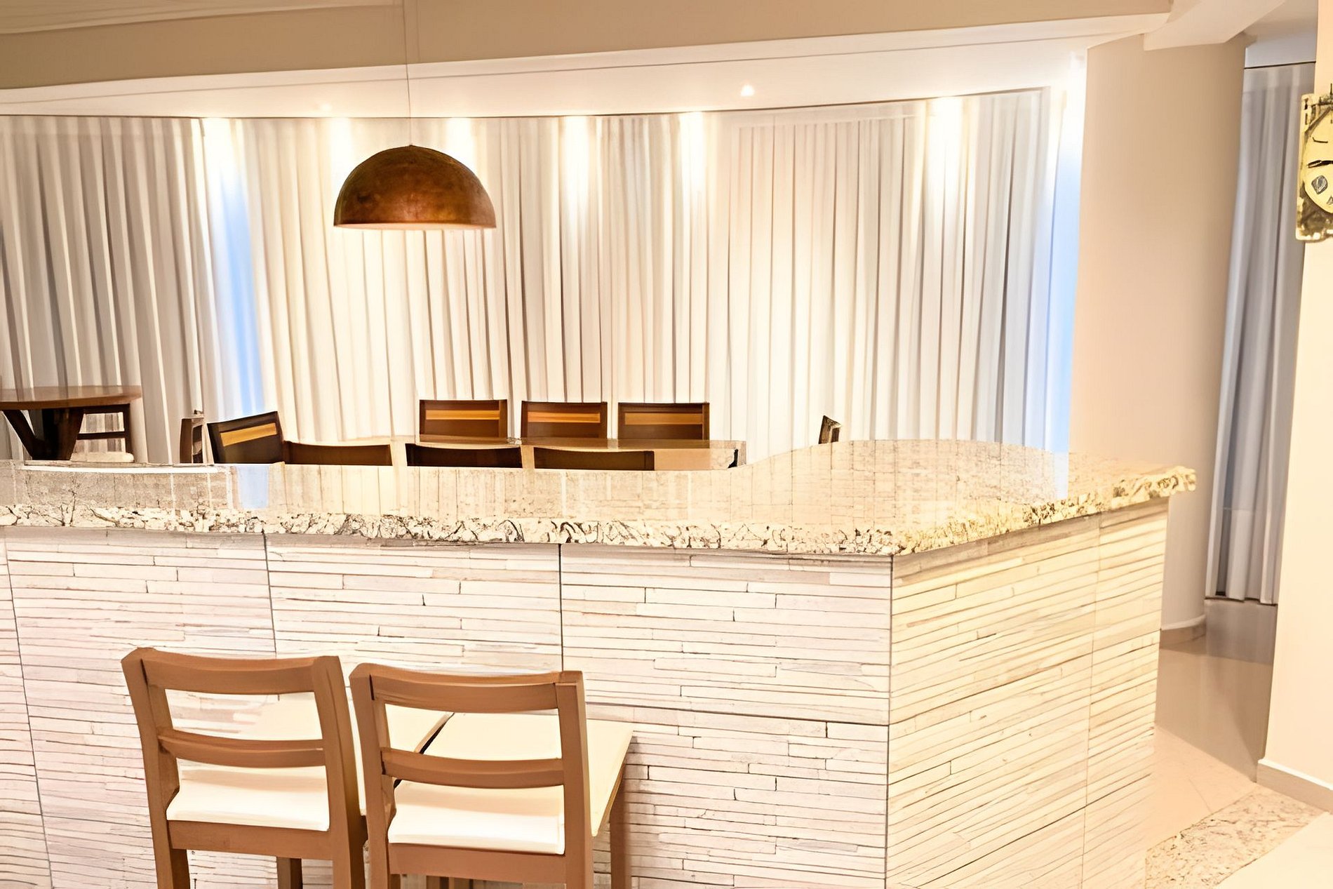 Apartamento amplo de alto padrão com 3 quartos (1 suíte + 2 demi-suítes), todo climatizado, finamente mobiliado e cozinha completa. O grande diferencial são as 4 vagas de garagem privativas, raridade na região! Localizado em frente ao Passeio San Miguel, com fácil acesso à Praia Central e diversas opções de lazer. Conta com churrasqueira, TV, máquina de lavar, ferro de passar e utensílios completos.